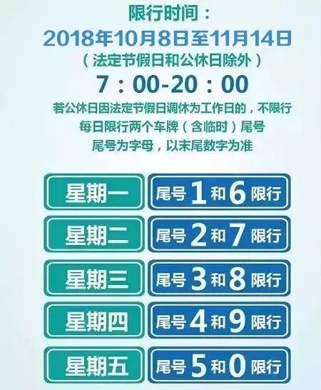 - 时间安排:通常从周一至周五的早上7:00开始至晚上20:00结束,国家法定节假日及公休日不采取限行措施。