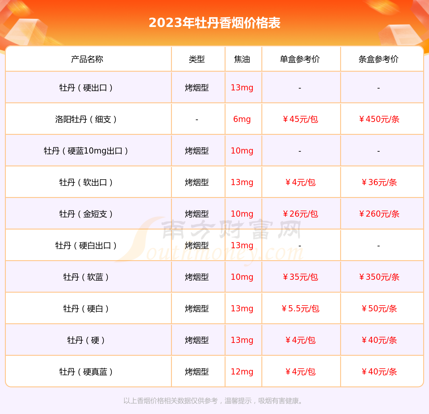 摘要:牡丹细支香烟价格表是消费者关注的热点之一。本文提供了关于牡丹细支香烟价格表的信息,同时对市场进行了分析与解读。随着烟草市场竞争的加剧,牡丹细支香烟的价格定位以及市场表现成为了行业关注的焦点。本文旨在帮助消费者了解牡丹细支香烟的价格情况,同时分析市场趋势,为相关人士提供参考。